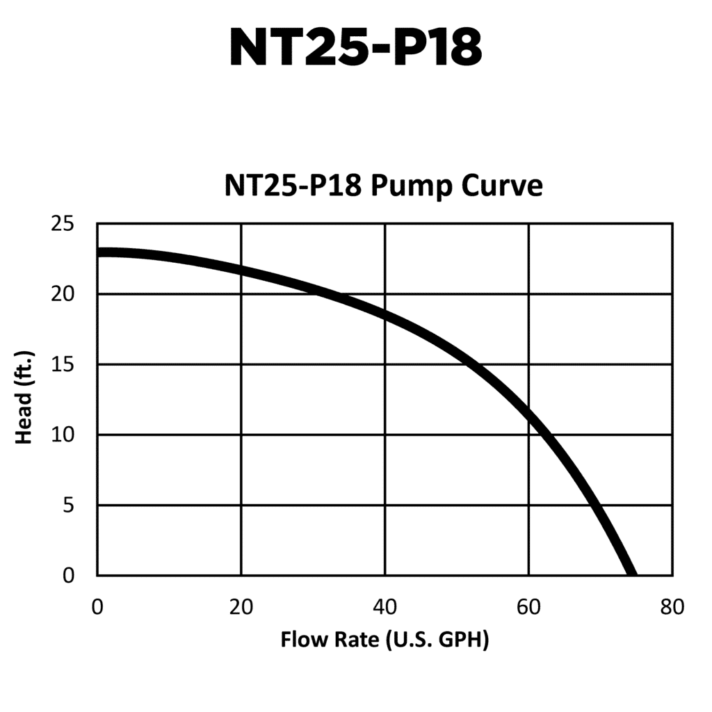 • 18 feet of lift at max design flow rate